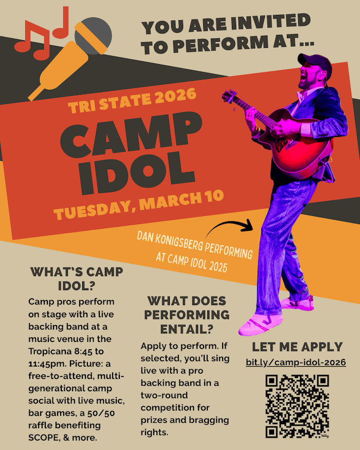 Come hang with the camp community. Even if you don’t perform, it’s going to be a blast.