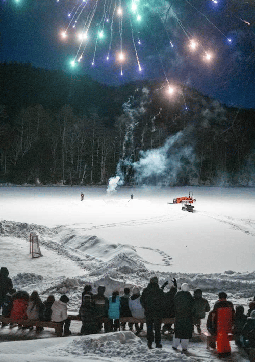 10:00am - Options here and there. Sledding in the Hollow. Sledding at JBF. Broomball on the pond. Kids going back and forth between them. It’s cold enough for fires on the lake.
